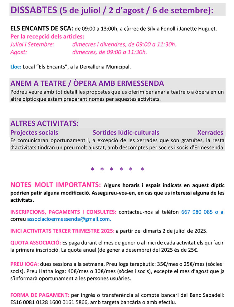 Activitats recurrents programades pel TERCER i QUART trimestre de 2025: