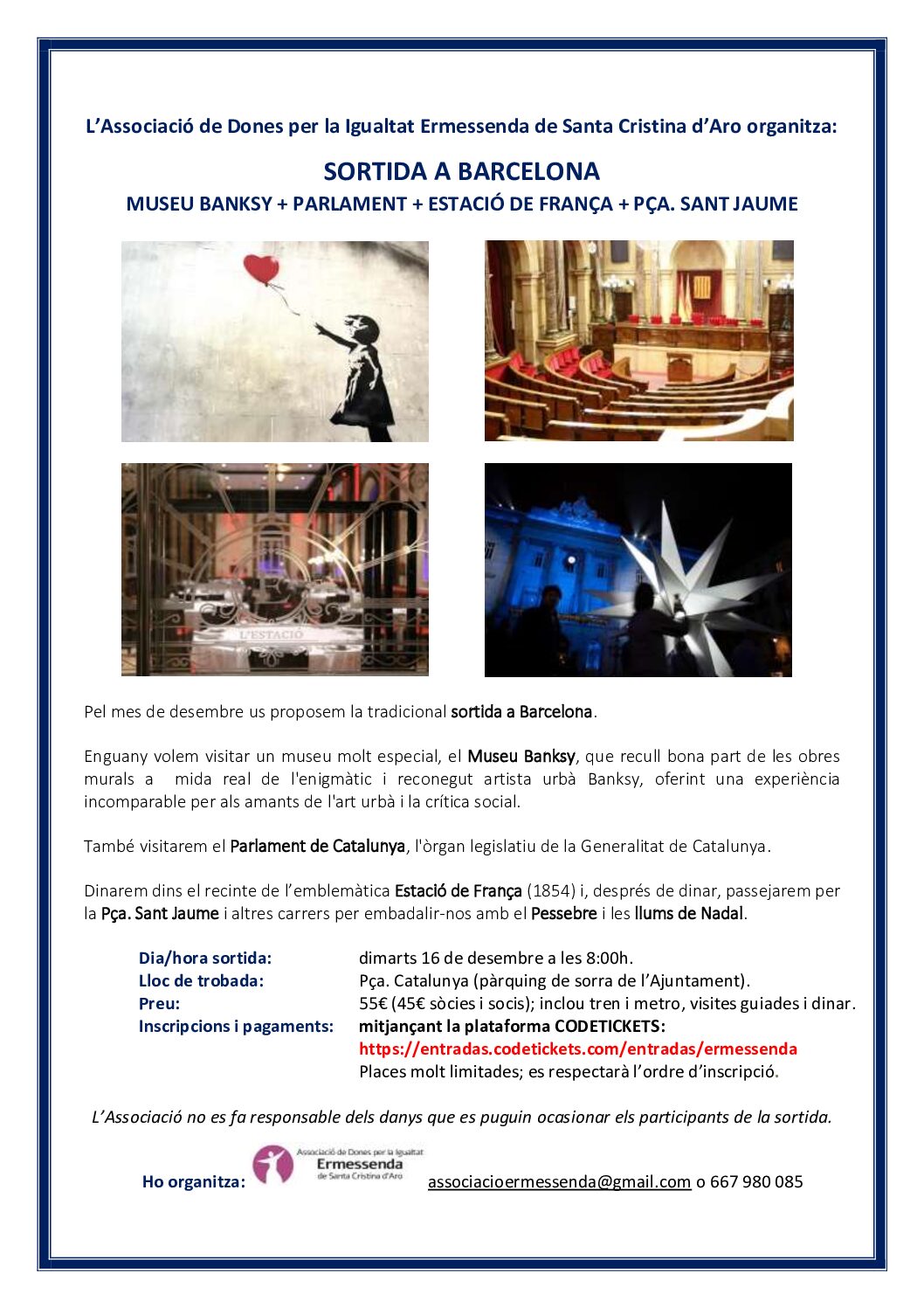 • SORTIDA A BARCELONA: MUSEU BANKSY+PARLAMENT+ESTACIÓ FRANÇA+PÇA. SANT JAUME