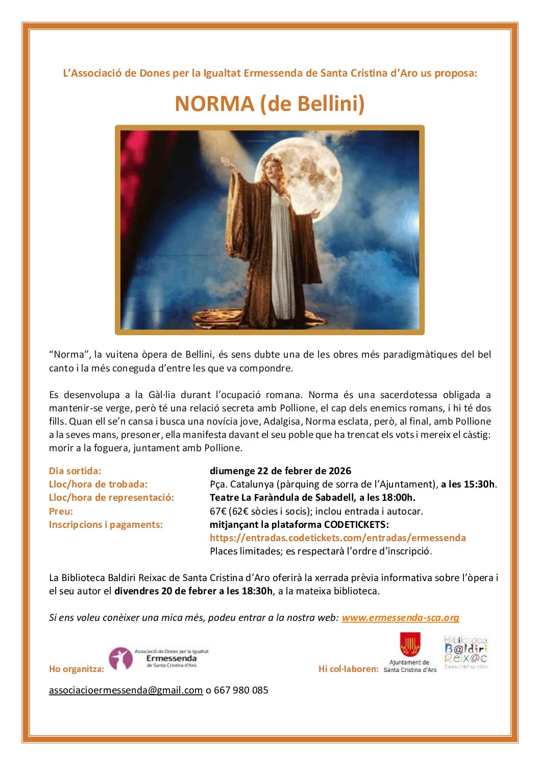 “Norma”, la vuitena òpera de Bellini, és sens dubte una de les obres més paradigmàtiques del bel canto i la més coneguda d’entre les que va compondre. Es desenvolupa a la Gàl·lia durant l’ocupació romana. Norma és una sacerdotessa obligada a mantenir-se verge, però té una relació secreta amb Pollione, el cap dels enemics romans, […]